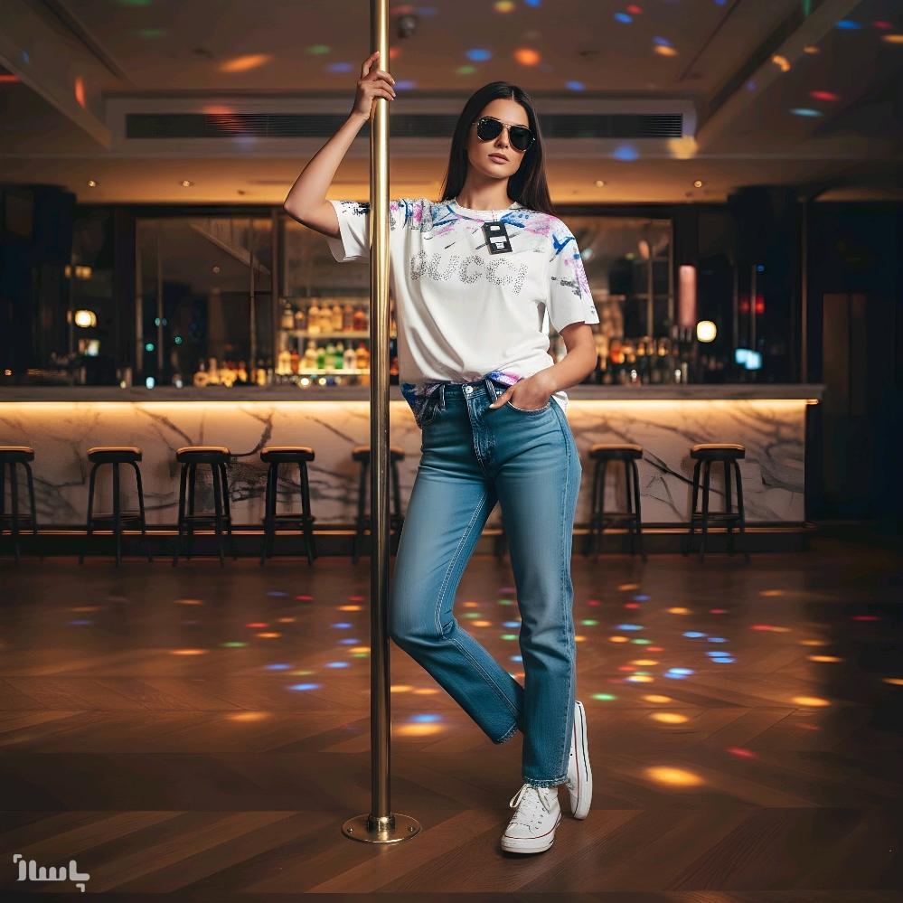 * طراحی هنری و ترند: ترکیب رنگهای جذاب و خاص (مانند آبی، صورتی/بنفش و طوسی) که به صورت هنری و اسپری مانند در قسمت سرشانه و پایین کار اجرا شده، یک استایل منحصر به فرد و بهروز (شبیه به ترندهای گرافیتی یا Street Art) را به وجود آورده است.