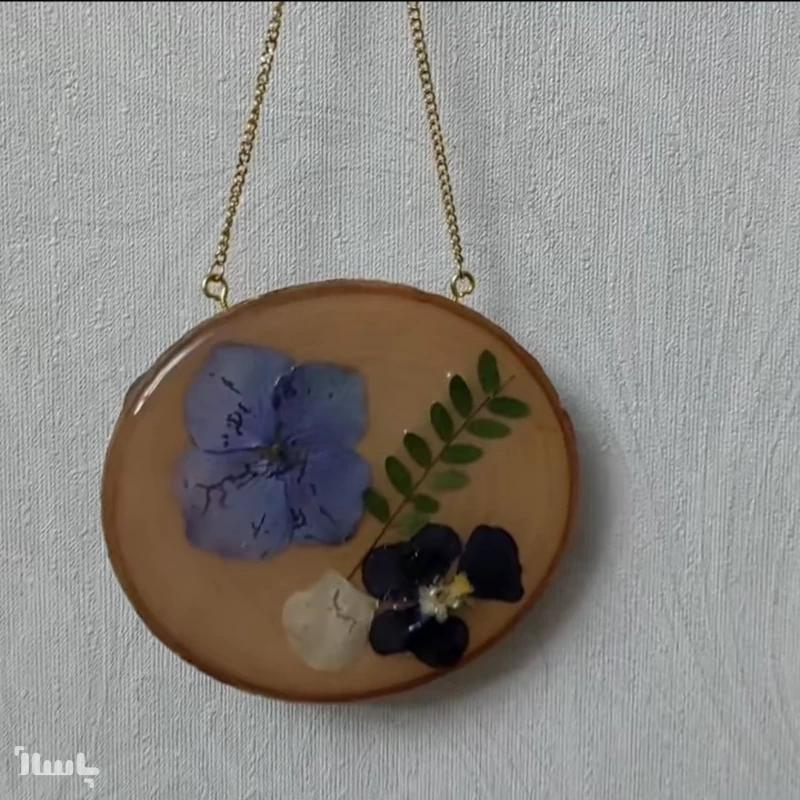 آویز دیواری رزینی که ترکیبی از چوب طبیعی و گل خشکه ️