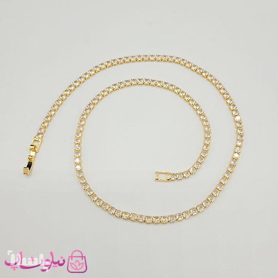 گردنبند دخترانه تنیسی طلایی رنگ نگین مربع سفید 45 سانت کد 2598