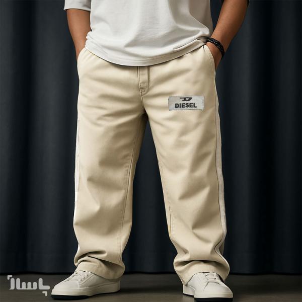 شلوار اسلش بگ نواردار کنفی جنس بنگال رنگ کرمی