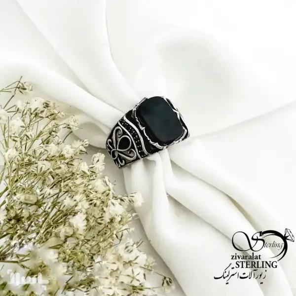 انگشتر نقره 925 عیار ترک با سنگ اونیکس کد 20240
