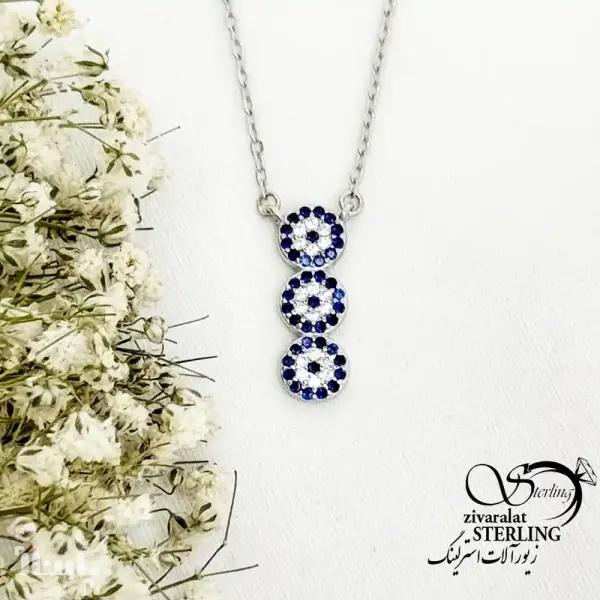 گردنبند آویز چشم نظر سه تایی نقره ایتالیا کد 19627