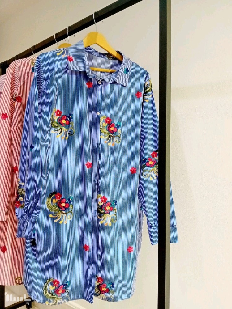 مانتوعیدانه و بهاره خامه دوزی گل آبی و صورتی یه مانتو شیک واسه مهمونیاتون