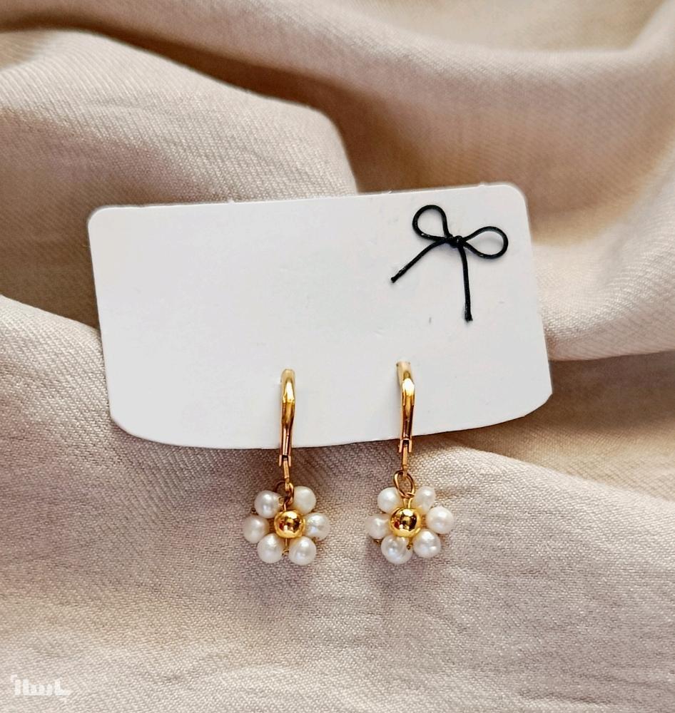 گوشواره مروارید پرورشی اصل مدل گل بابونه