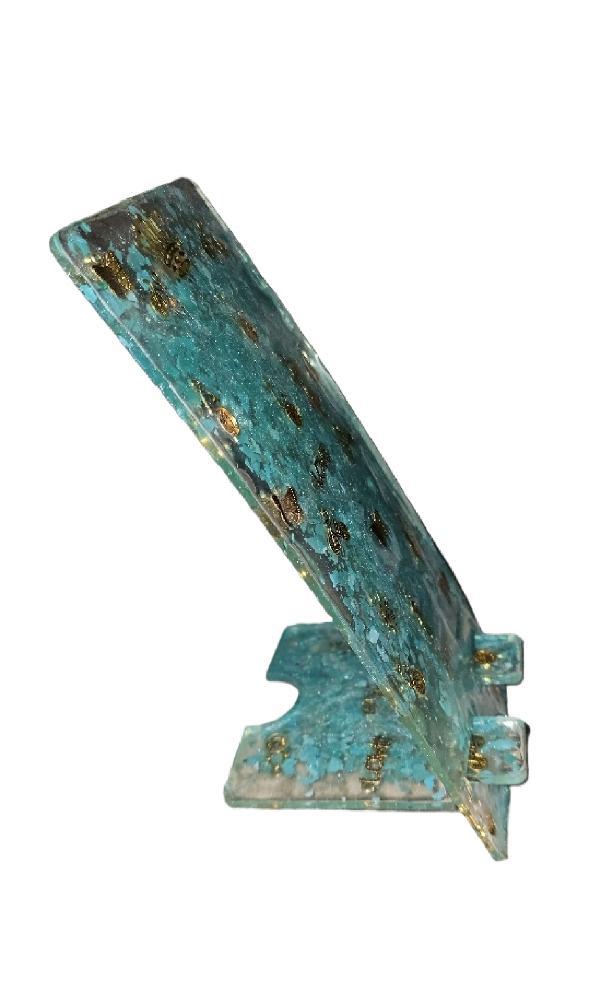 استند موبایل رزینی دستساز فیروزه ای