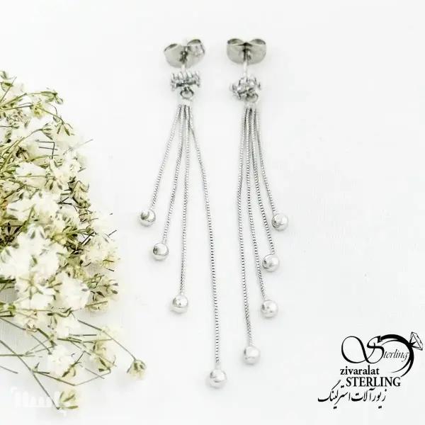 گوشواره ژوپینگ سفید طرح طلا آویز گوی دار کد 19717