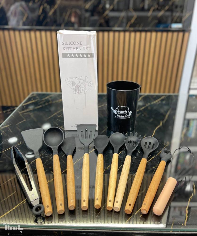 کفگیر ملاقه سیلیکونی 12 پارچه کاربردی، تنوع رنگ بالا،پر فروش درجه1