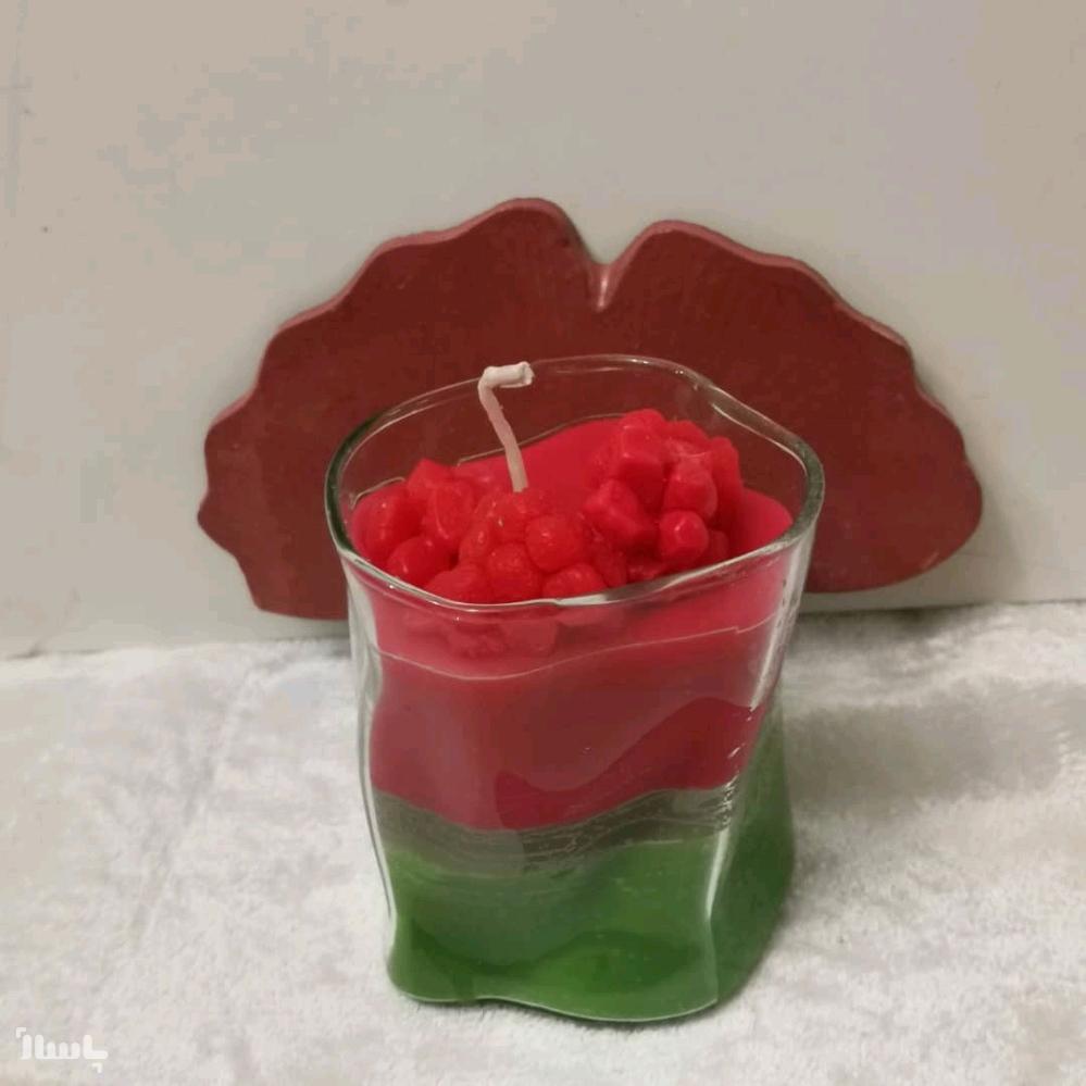 شمع شاتی هندوانه و انار در لیوان دفرمه ،کاملا مناسب سفره ی شب یلدا و دکور مینیمال و زیبا