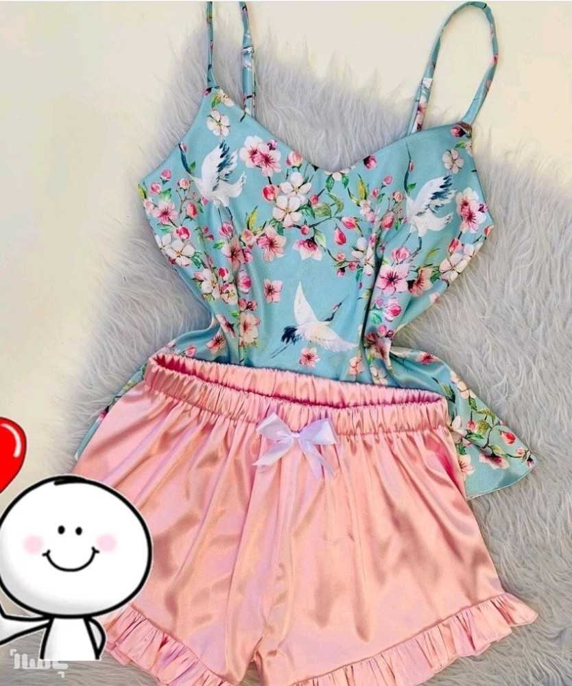 تاپ شلوارک ساتن ابریشم طرح بهار