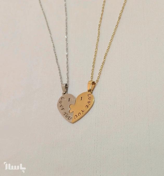 گردنبند استیل طلایی (دوستی)دو تکه مدل قلب با نوشتهی I love you