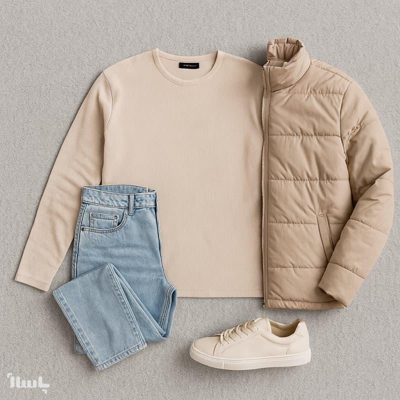 بلوز مردانه کرم یقه کوبایی مدل Etron