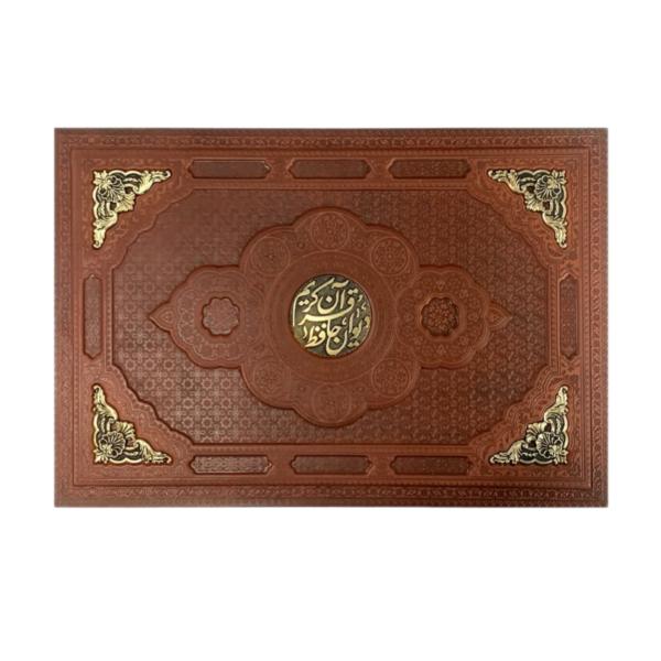 کتاب نفیس پک دو جلدی قرآن و حافظ چرمی همراه با جعبه طرح چرم و مس