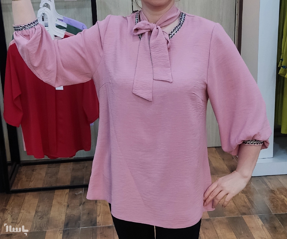 جنس پارچه ابرو و بادی مچ و یقه خرجکار دار در 7 رنگ و 4 سایز از 38تا 56 قد کار 75
