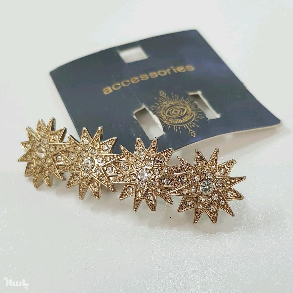 گیره مو کلیپسی طلایی مدل ستاره نگین دار ، بسیار زیبا و درخشان