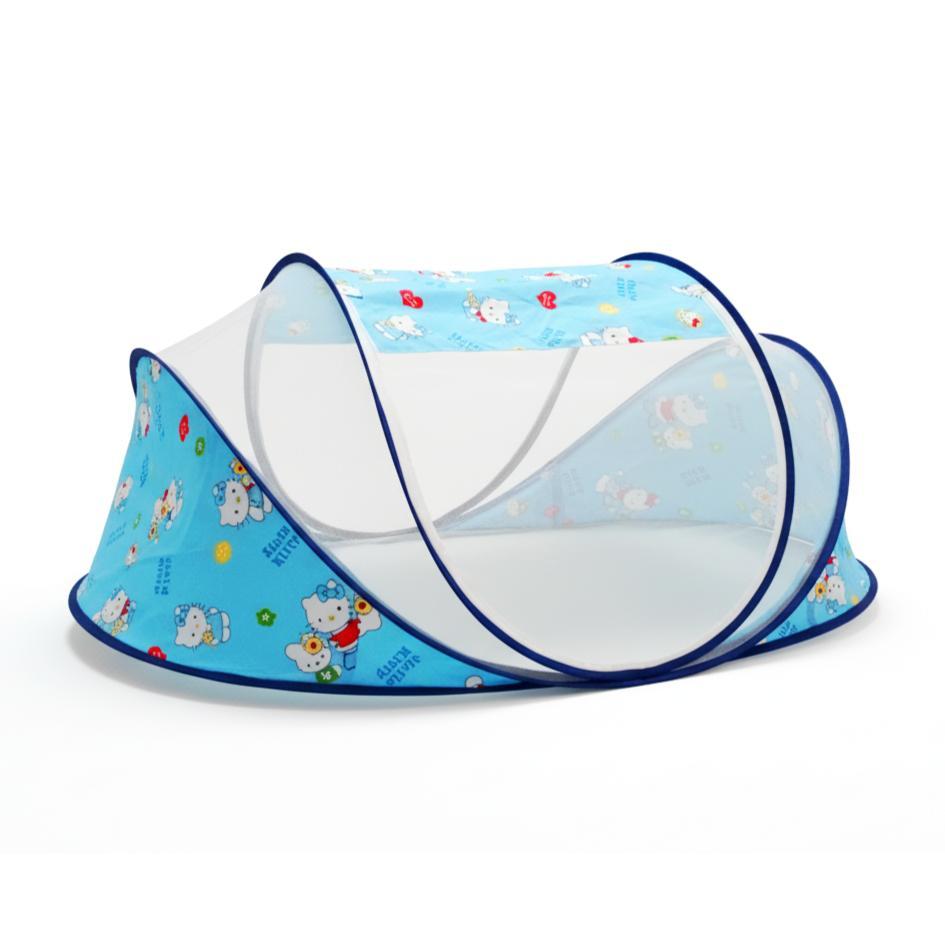 پشه بند کودک سه فنره طرح کمپ جعبه ای ( BABYS WORLD ) آبی