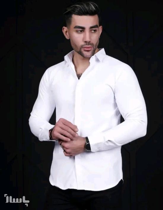 پیراهن مردانه سفید دوشین دکمه مخفی ارسال رایگان