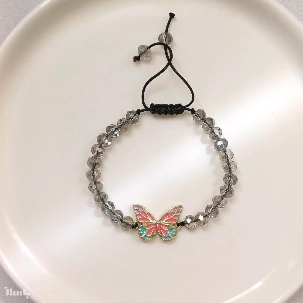 دستبند کریستالی طوسی با خرجکار پروانه هفت رنگ