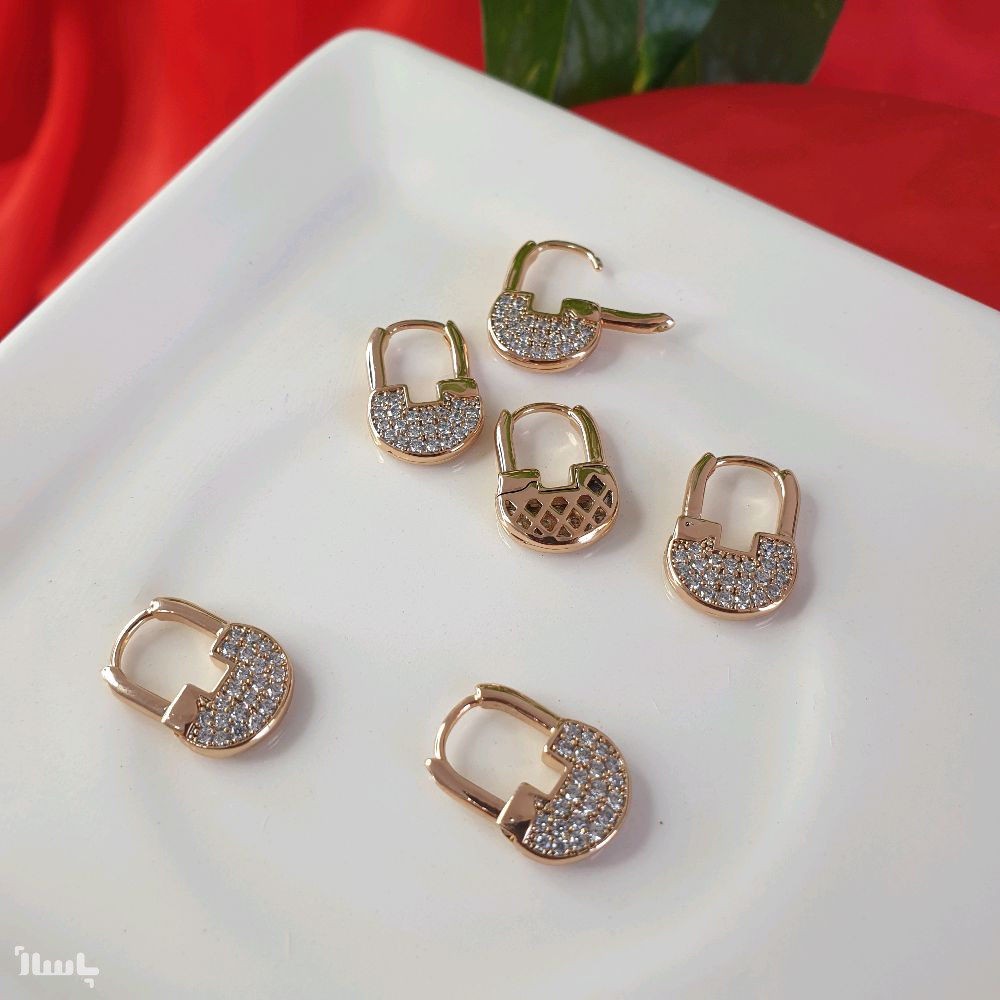 گوشواره قفل ژوپینگ نگین دار رنگ ثابت