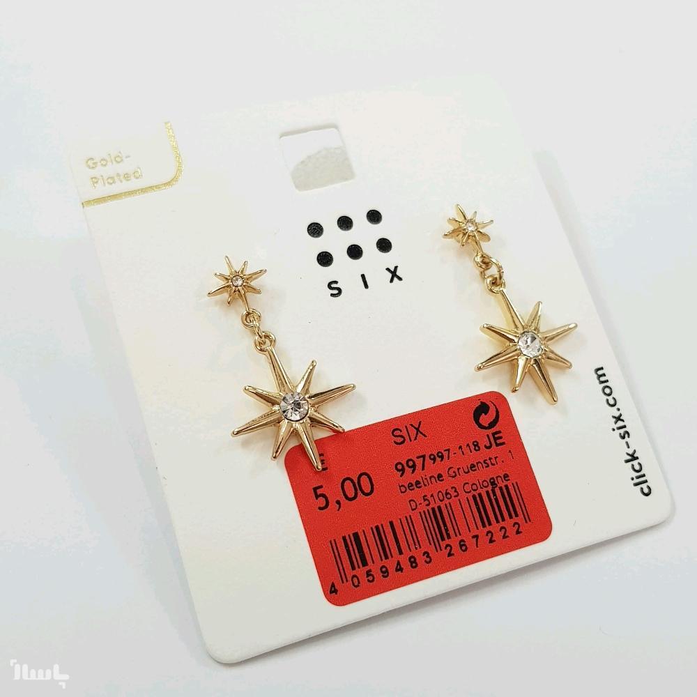 گوشواره آبکاری طلا آویز ستاره نگین دار ، فوق العاده زیبا و درخشان