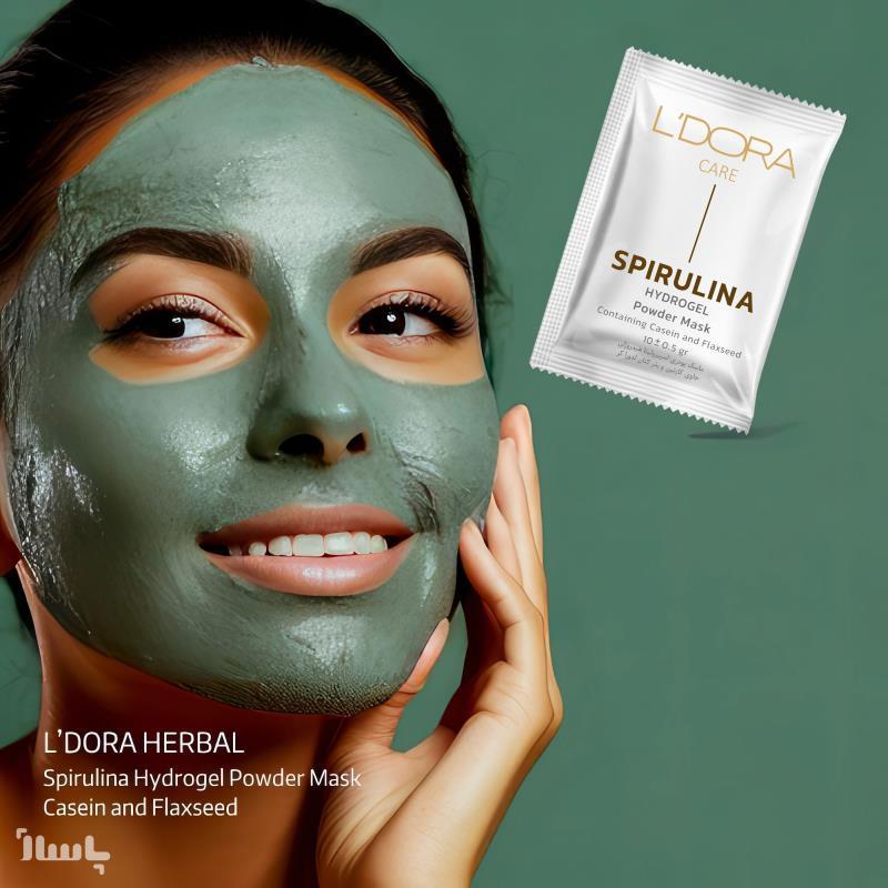 ماسک پودری اسپیرولینا هیدروژلی حاوی کازئین و بذر کتان لدورا کر