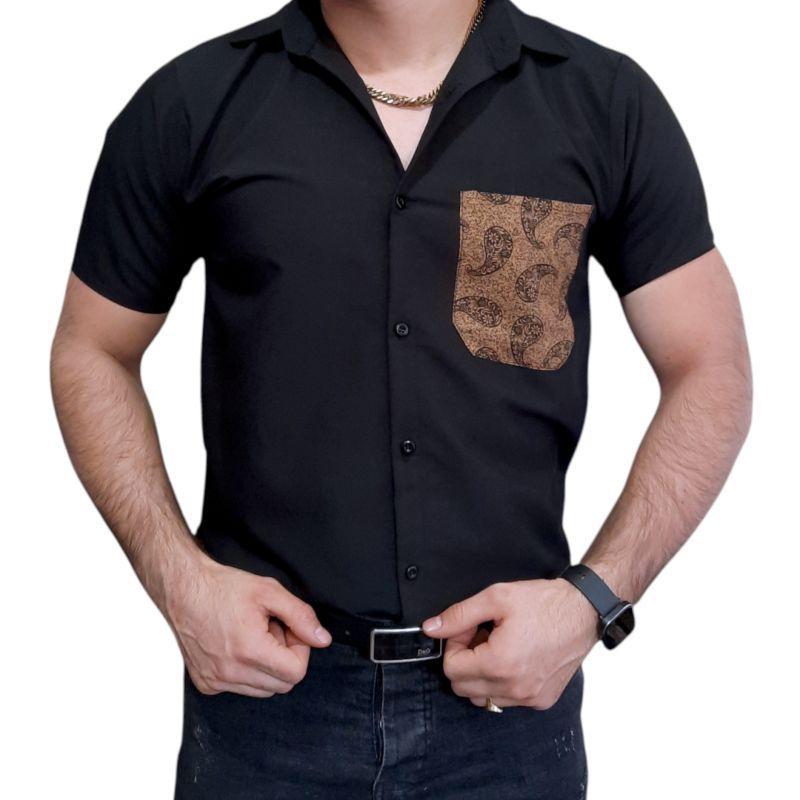 پیراهن مشکی مردانه آستین کوتاه با جیب طرحدار