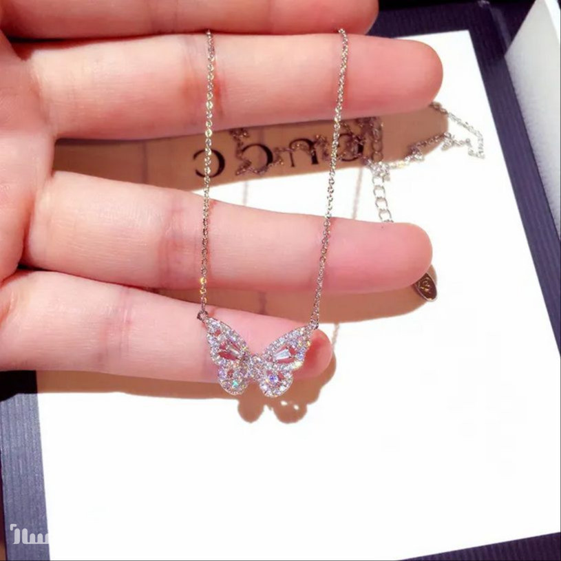 گردنبند ظریف و خاص پروانه نقره ای کد XL555