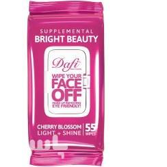 دستمال مرطوب پاککننده آرایش قوی ترین آنتی اکسیدان که براساس انواع پوست و نیاز طراحی شده است. حاوی Q1 یک کوآنزیم است که موجب تسریع سلول سازی پوست، افزایش کلاژن و در نتیجه جوانسازی میشود. دستمال مرطوب دافی به حفظ آب میان سلولی بعد از تمیز شدن پوست کمک کرده و موجب آلرژی و حساسیت نمیشود. همچنین فاقد پارابن، الکل و صابون است. دستمال پاک کننده آرایش دافی حاوی روغن جوانه گندم و آلوئهورا که رطوبت بخش و ضد لک است. این دستمال موجب شفاف شدن پوست صورت شده و سلولهای مرده پوست را از بین میبرد و به راحتی آرایش چشم و صورت را پاک میکند. همچنین به دلیل استفاده از عصاره شکوفه گیلاس ژاپنی به عنوان یک گیاه کمیاب با اثر جوان کننده و ضد چروک بسیار مورد توجه قرار گرفته است.