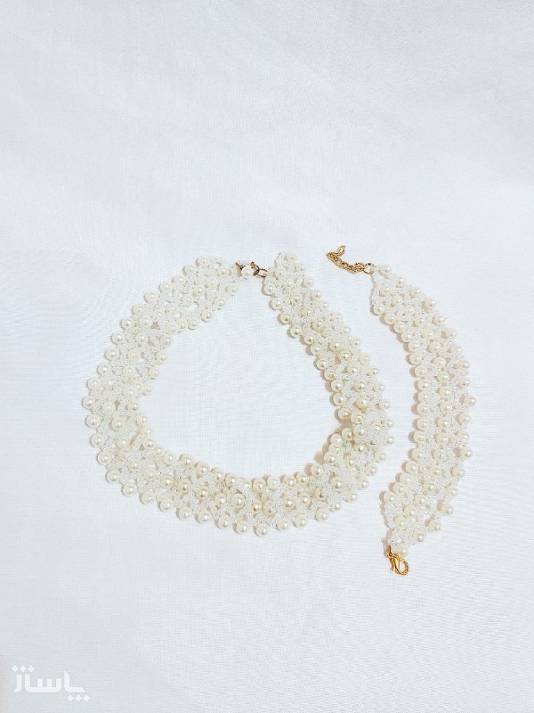 ست گردنبند و دستبند مروارید منجوق اکسسوری دستساز