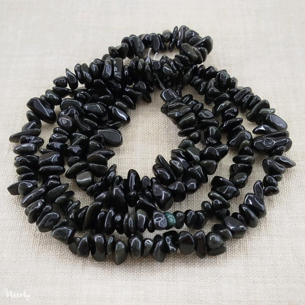 ریسه سنگ ابسیدین سیاه شکسته (طول ریسه 40 سانتیمتر است)