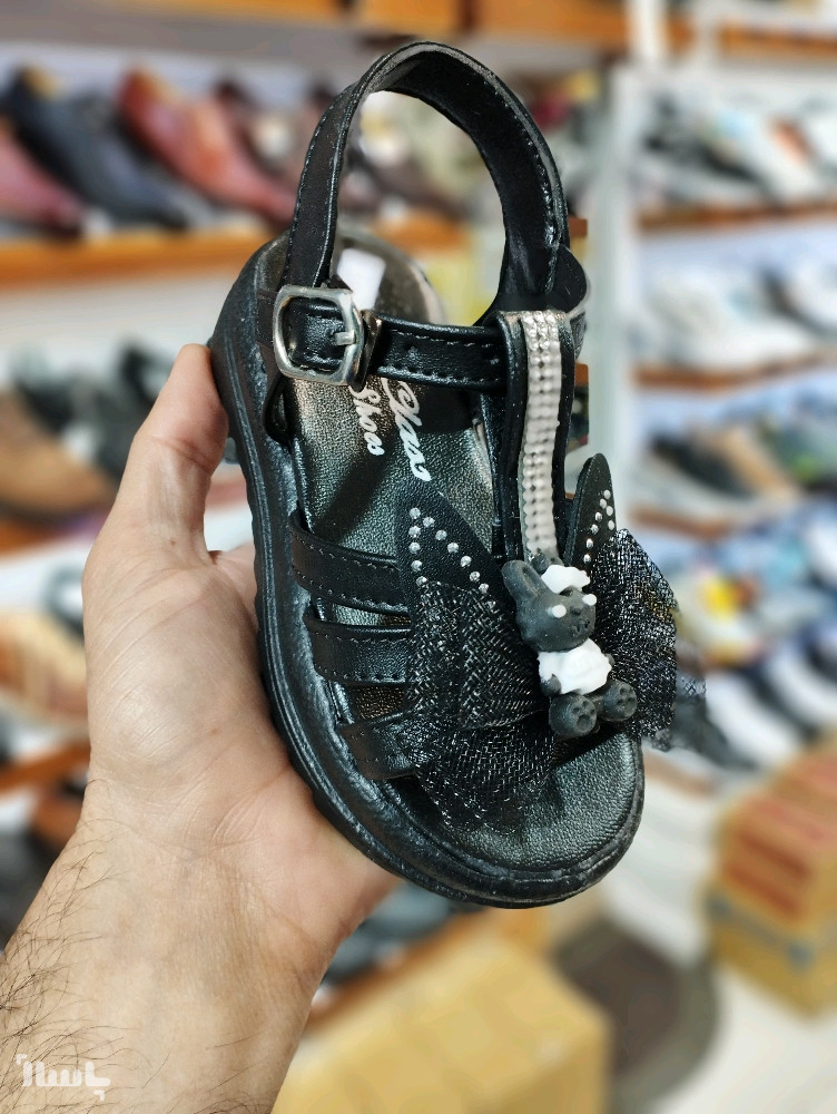 صندل تابستانی دخترانه با رویه چرم صنعتی و زیره پیو بسیار نرم و راحت در دو رنگ مشکی و کرمی و سایز بندی 26 تا 31