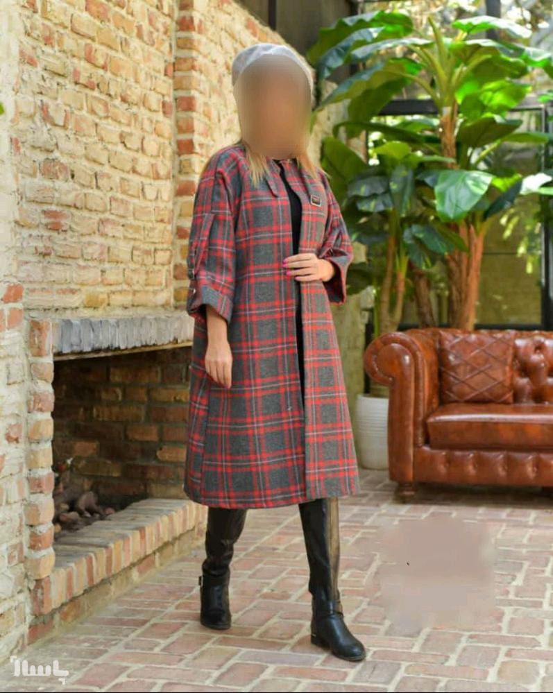 پالتو زنانه بلند چهارخونه سگک دار ترک