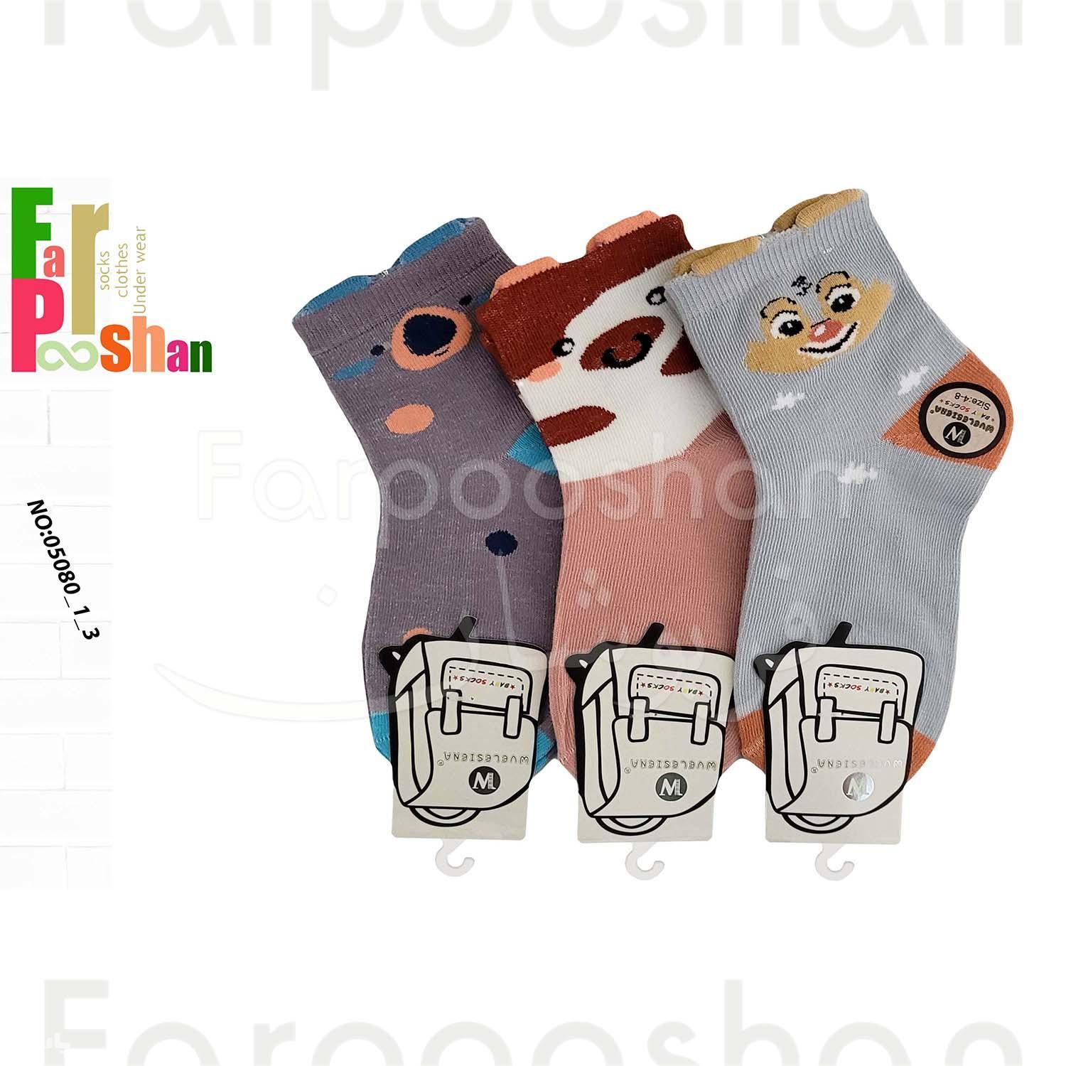 جوراب دخترانه مدل صورتک 3-1-05080 بسته 3 عددی