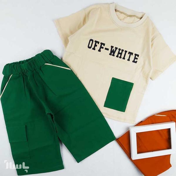 ست تیشرت شلوارک پسرانه آف وایت کد 9498