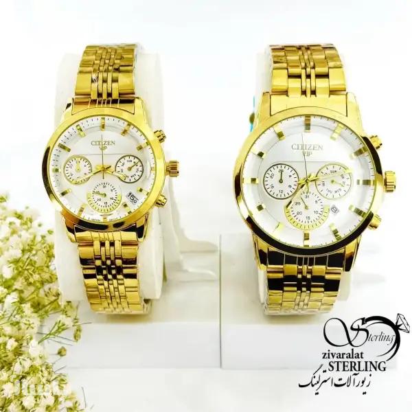 ساعت ست طلایی برند سیتیزن موتور سه تایی کد 19282