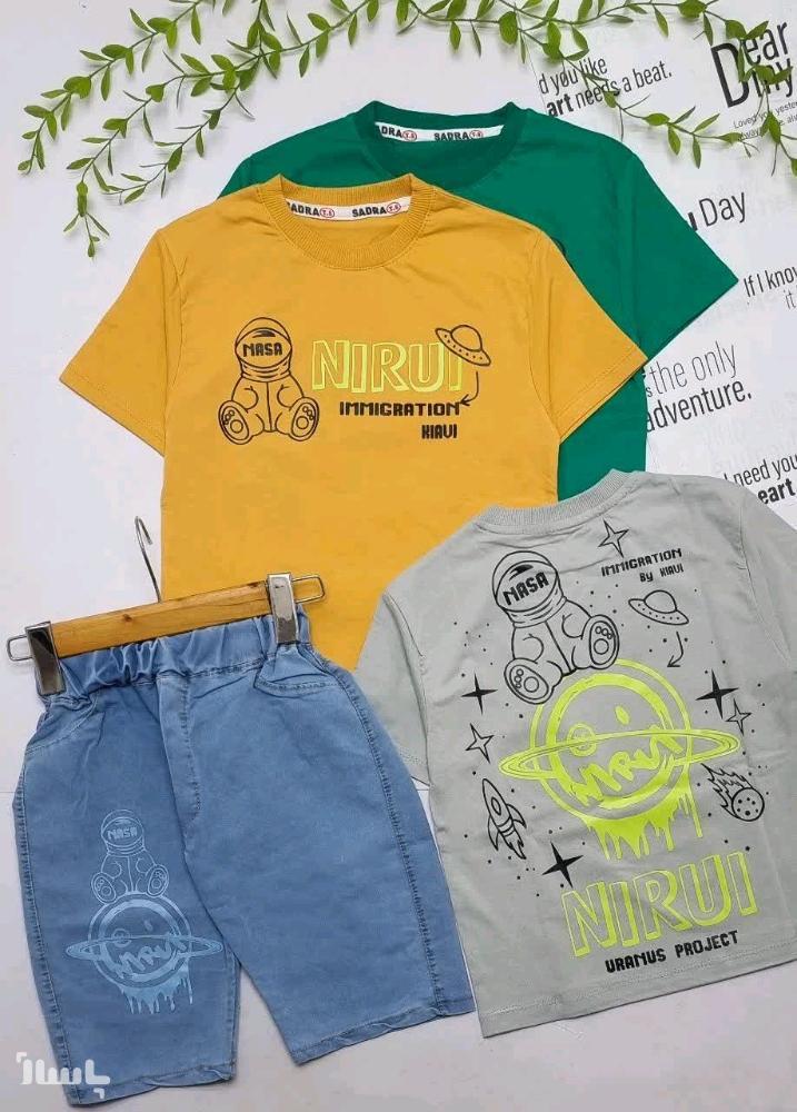 تیشرت شلوارک لی پسرانه طرح فضانورد تیشرت نخ پنبه شلوارک لی ست پسرانه