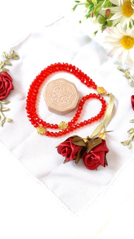 تسبیح بزرگ کریستالی دستساز 99 دانه با آویز گل روبانی