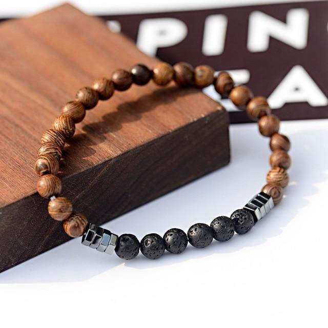 دستبند سنگ لاوا و چوب و حدید