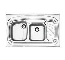 سینک استیل البرز 611 روکار دارای ابعاد 60* 100 سانتی متر با طراحی یک لگن بزرگ و یک لگن متوسط به همراه یک سینی کوچک با سریز بر روی سینی