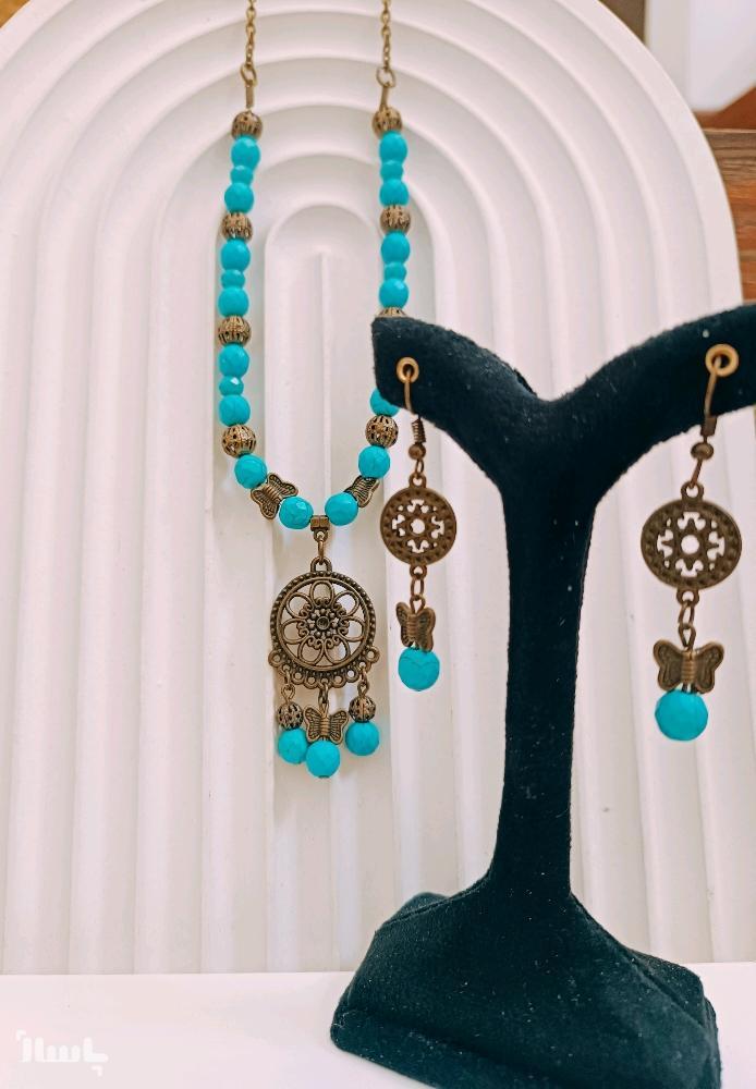 ست گردنبند وگوشواره سنتی سنگ فیروزه