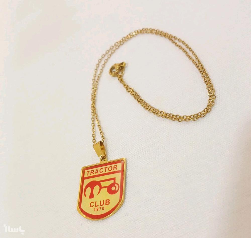 گردنبند ورزشی تراکتور از جنس استیل با رنگ طلایی درخشان، انتخابی خاص برای هواداران پرشور.