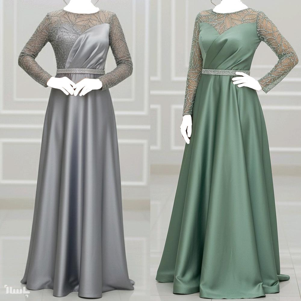 لباس مجلسی ماکسی پوشیده ساتن سایز بزرگ صد ف
