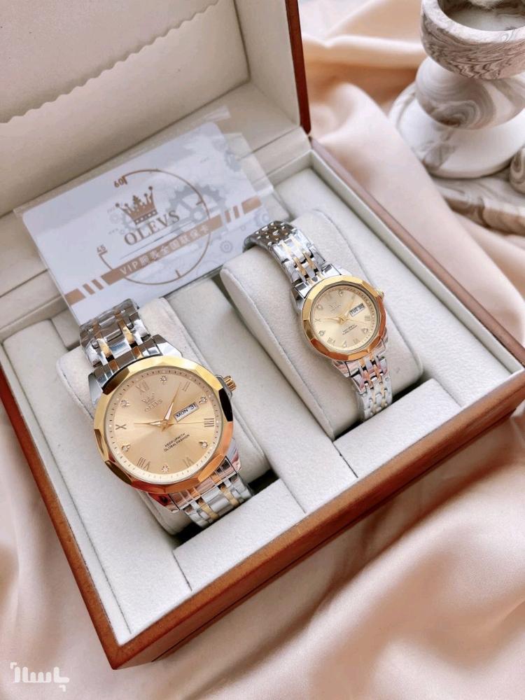 ساعت ست زنانه مردانه استیل ضد آب شیشه ضد خش صفحه طلایی الوز