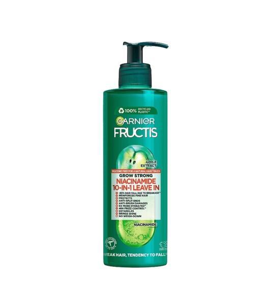 کرم موی 10 کاره گارنیه سبز حاوی عصاره سیب به همراه نیاسینامید (ویتامین،B6, B3) جهت احیای استحکام و انعطاف پذیری موهای سالم است. نتیجه استفاده از آن موهایی سالم، منعطف و محافظت شده همراه با شانه پذیری آسان می باشد. کرم مو ده کاره گارنیه ضمن بهبود و درمان موهای آسیبدیده، موخوره را به شدت کاهش می دهد. این محصول موها را نرم و صیقلی و مانع گرهخوردن آنها می شود.