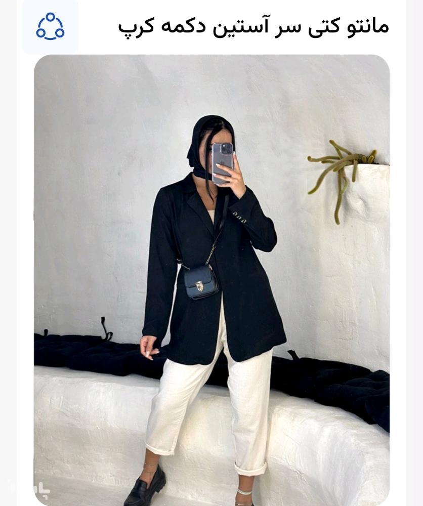 مانتو دانشجویی کرپ مدل کت مانتویی دانشجویی جیب دار سرآستین دگمه دار تک رنگ مشکی