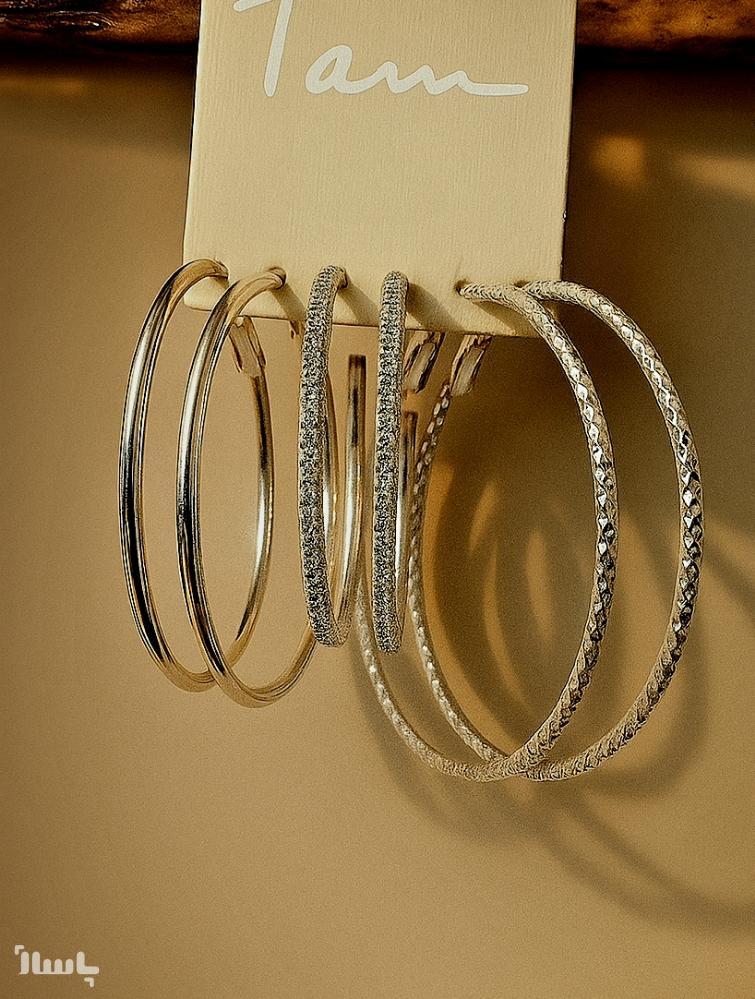 این ست سهتایی گوشوارههای حلقهای، با طراحی متفاوت و بافتهای ظریف، ترکیبی از سادگی و درخشندگیه