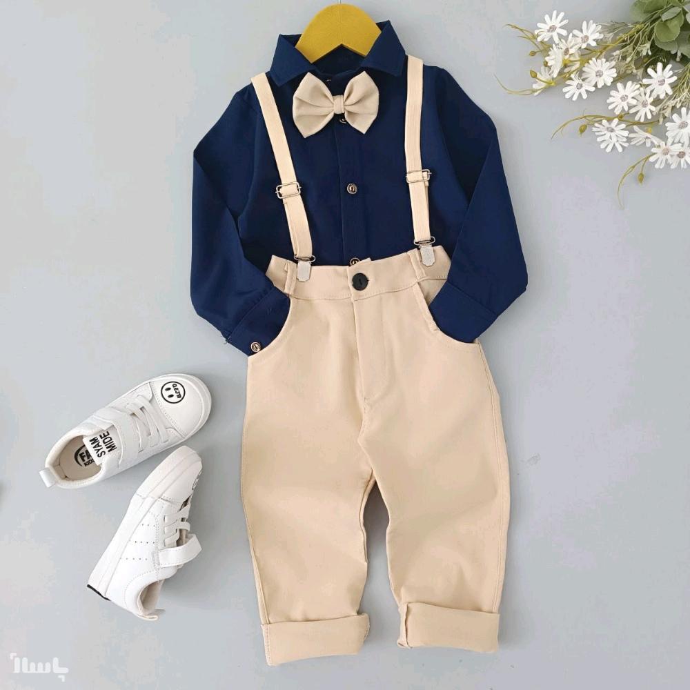 ست 4تیکه مجلسی شامل پیراهن شلوار ساسبند و پاپیون