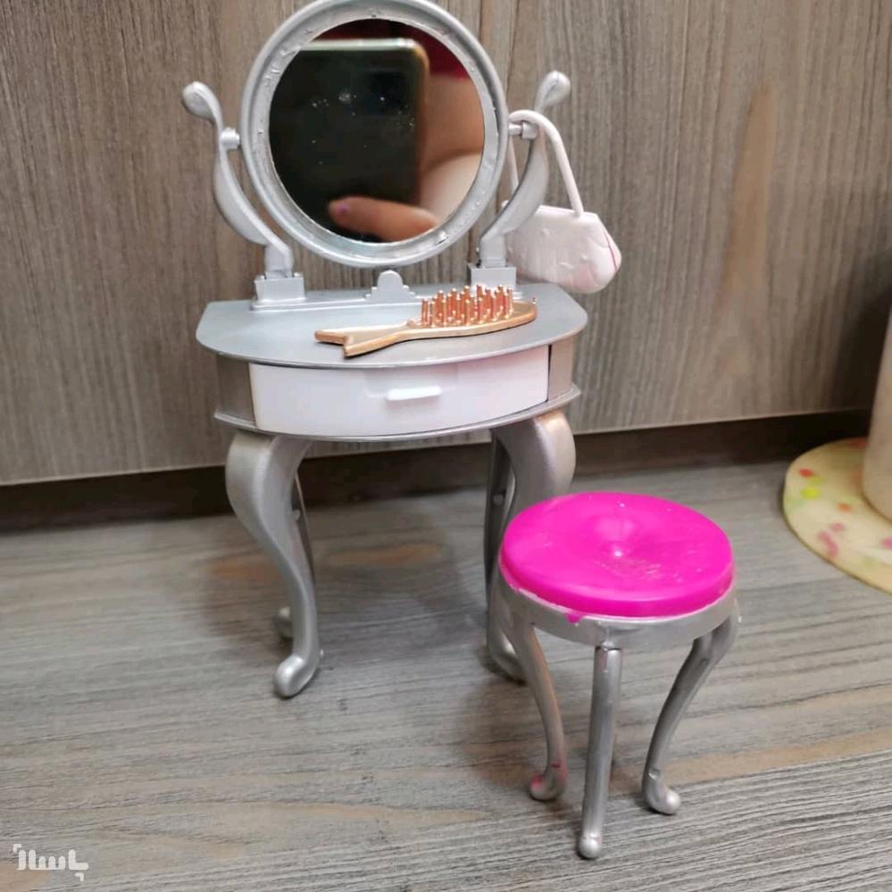 میز آرایش یونیک عروسک باربی همراه با شانه عروسک و کیف عروسک،با آینه ی واقعی