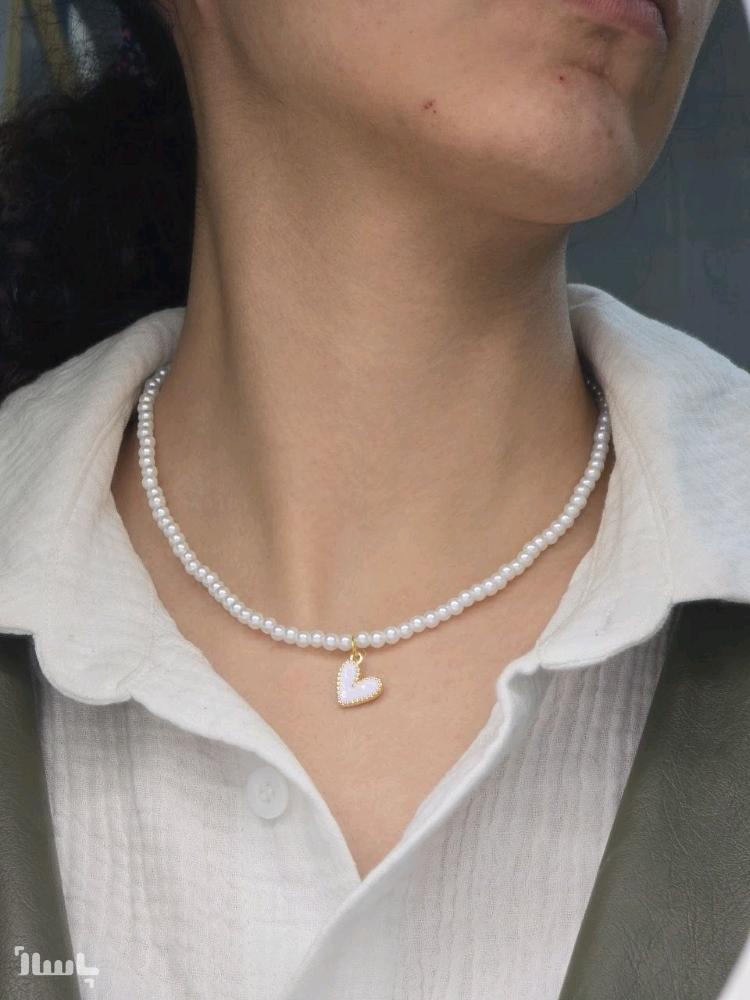 گردنبند زنانه پلاک کار استیل زنجیر دور مروارید کار شده