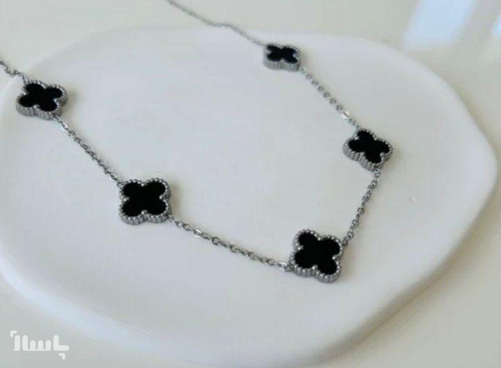 گردنبند ونکلیف استیل رنگ ثابت مشکی نقره ای.