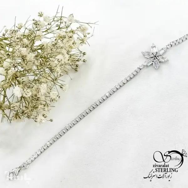 دستبند نقره فول نگین طرح گل ساخت ایتالیا کد 20328